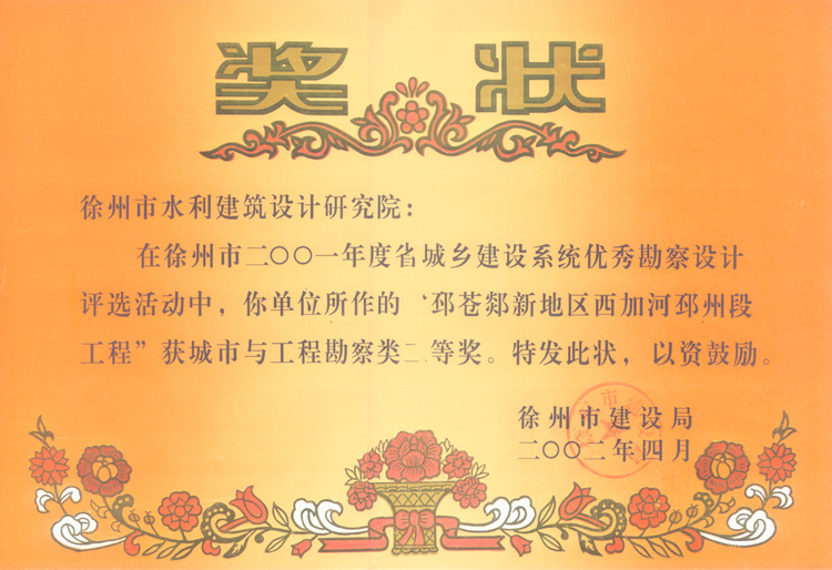 《邳蒼郯新地區西加河工程》市勘察二等獎(2002)